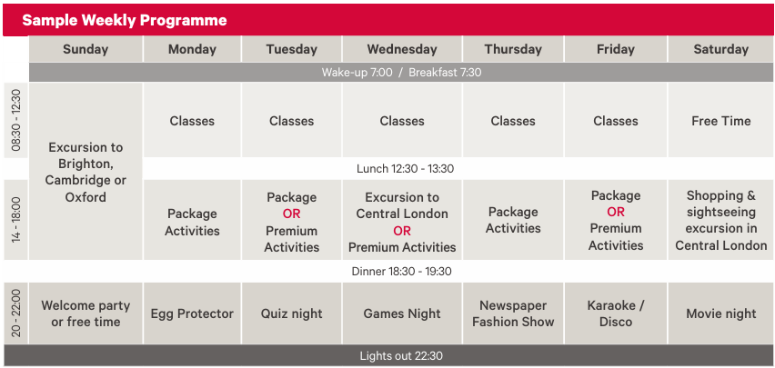 Dersler dinamik ve motivasyonu yüksek öğretmenlerle birlikte işlenmektedir. Kurs programı konuşma, yazma, dinleme, okuma becerilerinin gelişmesine yöneliktir. Dersler İngilizceyi çeşitli program ve aktivitelerle aktif olarak kullanmalarını sağlamaya yöneliktir.